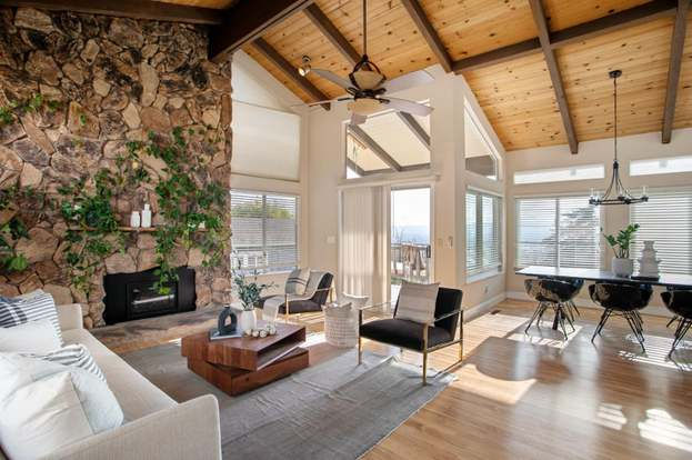 Spectacular views of the valley, city lights, and beautiful mountain sunsets. Upgraded kitchen, bathroom, flooring, fresh interior painting and new main water line to the house. Vaulted ceilings. Central heat/AC. Water softener. Formal living and dining rooms are perfect for entertaining. Decks, patios and balconies to enjoy outside living. Low maintenance back and front yards. Seismically braced foundation. Close to Alum Rock Park trails and San Jose County Club. Wonderful country living and the city is just minutes away.